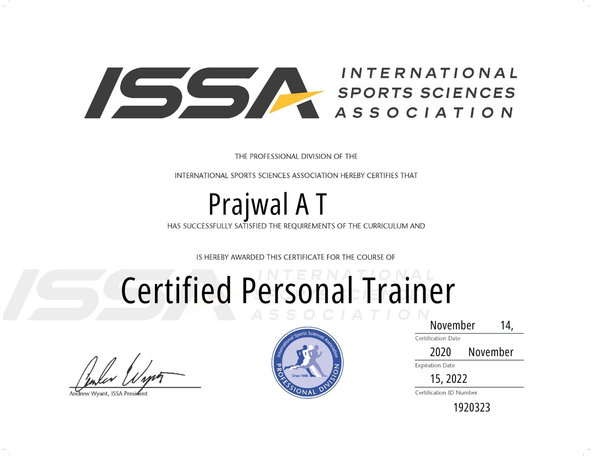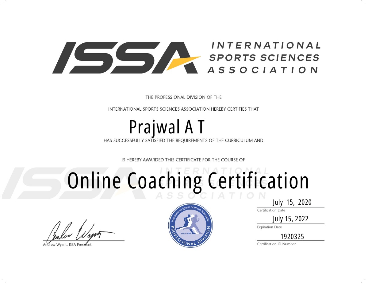 Hello, this is Prajwal, founder, director at GOGETFIT, your Coach. I am ISSA certified elite trainer. I am here to simplify fitness and make your fitness journey more fun, interesting and easy going. I create customized plans based on your preferences, budget, lifestyle, training level and goals. We together can make it possible. Enroll now. Let’s GOGETFIT.